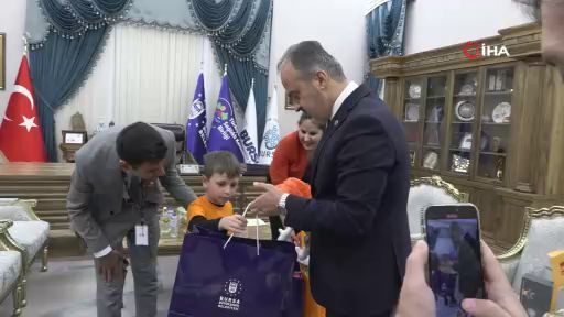 Bursa Büyükşehir Belediye Başkanı Alinur Aktaş, 2-8 Kasım Lösemili Çocuklar Haftası etkinlikleri kapsamında lösemiyle mücadele eden 3 küçük kahramanı makamında konuk etti.