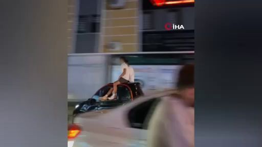 Bursa'nın İnegöl ilçesinde gençlerin elektrikli araç üzerinde seyretmeleri amatör kameraya yansıdı.