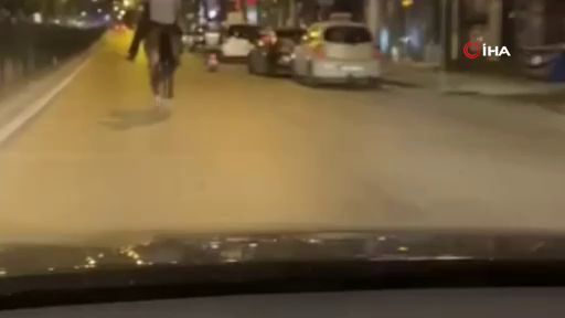 Geç saatlerde Mustafa Kemal Paşa Caddesi'nde bir kişinin caddede atla ilerlediği anlar, arkasında ilerleyen araçtaki vatandaşlar tarafından cep telefonu kamerasıyla kaydedildi. Şaşkın araç sürücülerinin yavaşlayıp dikkatlice yanından geçtiği atlı, caddede ilerledikten sonra gözden kayboldu.
