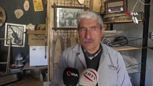 Kahramanmaraş merkezli depremlerin etkilediği Malatya’da evi hasar alan Mikail Fırat, ahşap atölyesinde hem sanatını icra ediyor hem de yaşamını sürdürüyor.