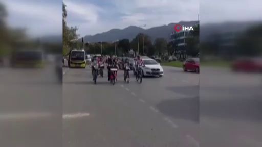 Bursa’da bir damat adayı ve arkadaşları gelin alma merasimine bisiklet konvoyu ile gitti.