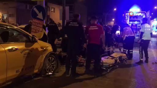 Bursa’da hamile kadın ve yakınlarını hastaneye yetiştirmek için hızla ilerleyen ticari taksi, motosiklete çarptı.