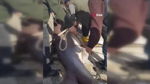 Marmara Denizi'nin güney kıyılaranı oluşturan Gemlik körfezinde balıkçıların ağına 1 tonluk 3.5 metre boyunda köpekbalığı takıldı.