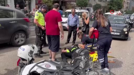 Bursa’da otomobiliyle seyir halindeki kadın sürücü dönüş yapmak isterken önünde motosikletle ilerleyen trafik polisine çarptı.