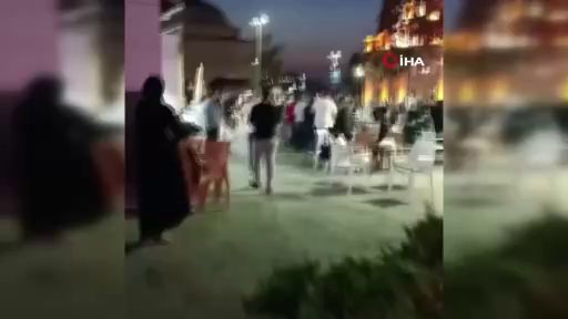 Bursa’da iki grup arasında çıkan kavgada sandalyeler havada uçuşurken, saldırganlardan biri de tartıştığı kişilere kılıç çekti. O anlar kameralara yansıdı.