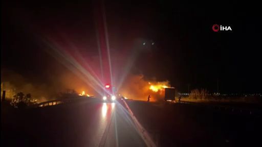 Metal yüklü tırın dorsesi alevlere teslim oldu