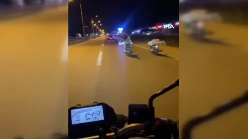 Bursa'nın İnegöl ilçesinde iki sürücünün motosikletlerinin üzerine yatarak ölümüne yarış yaptıkları anlar amatör kameraya saniye saniye yansıdı