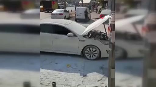 Bursa'da otomobiliyle seyir halindeki Ahmet Yıldız, yan şeritteki motosiklet sürücüsünün uyarısıyla kullandığı aracın motor kısmındaki alevleri fark etti.
