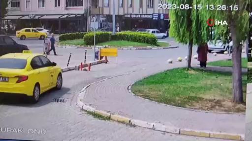 Bursa'nın İnegöl ilçesinde taksi durağına müşteri olarak gelen şahıs telefon çaldı. O anlar saniye saniye güvenlik kamerasına yansıdı.