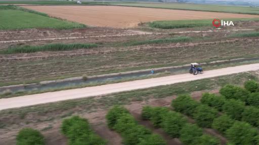 Adana'da bir gencin, çocukken çizgi filmden görüp merak sardığı sörfü, kendi yaptığı tahtasıyla traktör yardımıyla sulama kanalında yapması görenleri hayrete düşürdü.
