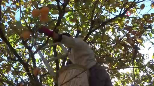 ilecik'te 7'den 70'e herkes, 'Cennet Hurması' başka bir ismiyle Trabzon hurması hasadı için kolları sıvadı.